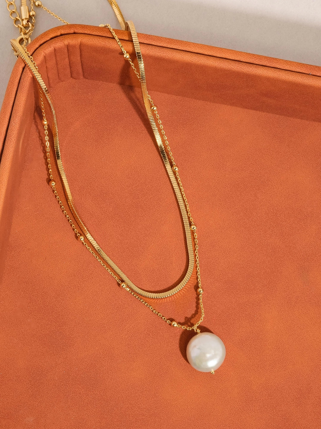 Bindi 18K Gold Layered Pearl Chain Necklace